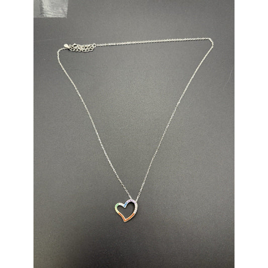 New Condition 18" Sterling Silver Rainbow Cubic Zirconia Heart Pendant Necklace