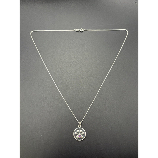 New Condition 18" Sterling Silver Amethyst Dog Cat Paw Pendant Necklace