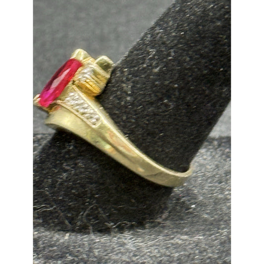 Gold Sterling Silver Lab Ruby Ring Size 6.75 Topaz W8