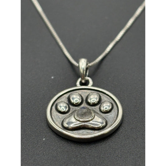 New Condition 18" Sterling Silver Paw Print Moonstone Pendant Necklace