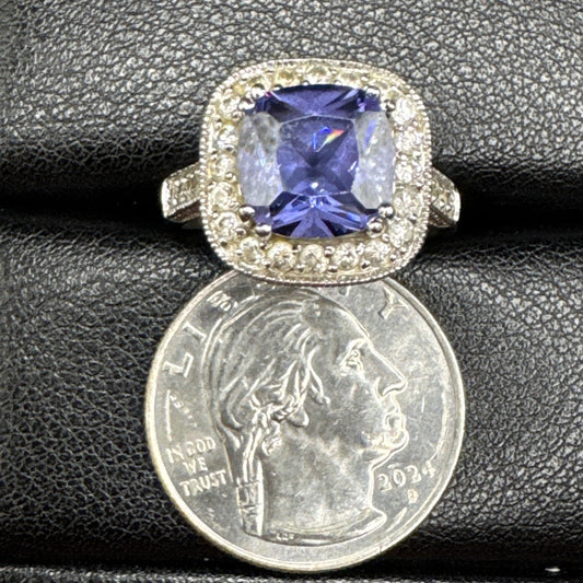 EUC Sterling Silver Purple CZ Ring 925 Size 9.75 Q23
