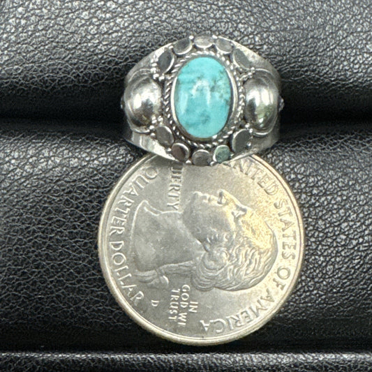 New Condition Sterling Silver Bali style Turquoise Ring Size 7