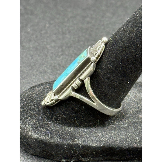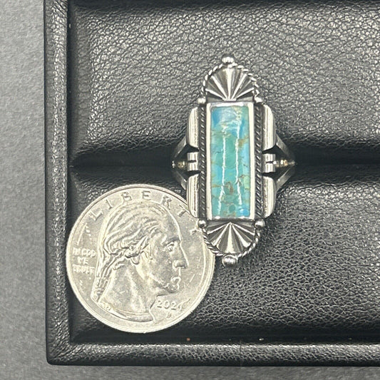 New Condition Sterling Silver Art Deco Turquoise Ring Size 8.00 925