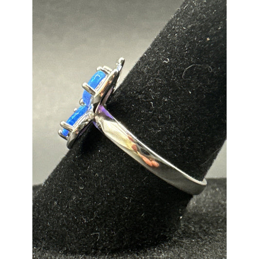 New Condition Sterling Silver Blue Lab Opal Butterfly Ring 925 Size 7