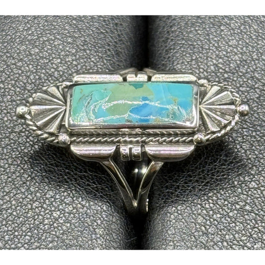 New Condition Sterling Silver Art Deco Turquoise Ring Size 9.50 925