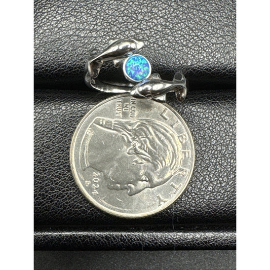 New Condition Sterling Silver Blue Opal Double Dolphin Ring 925 Size 7