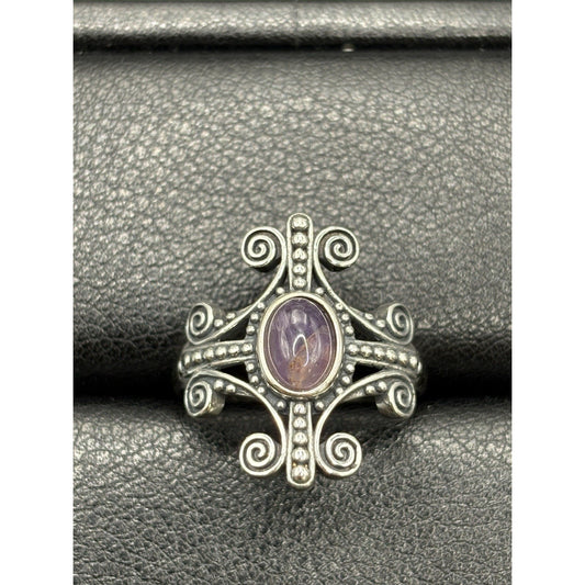 New Condition Sterling Silver Amethyst Scroll Ring Size 7