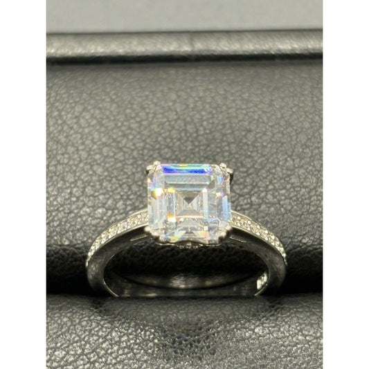 New Condition Sterling Silver Cubic Zirconia Ascher Cut Engagement Ring Size 7