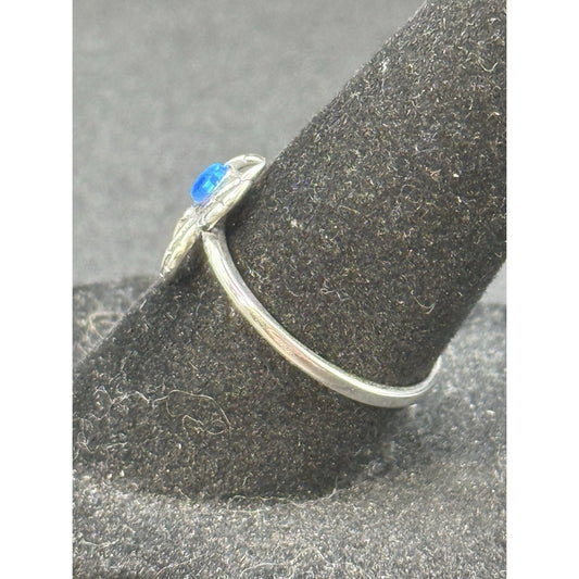 New Condition Sterling Silver Lab Blue Opal Spider Dainty Ring Size 6.50