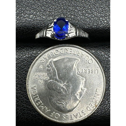 New Condition Sterling Silver Lab Created Sapphire Dainty Ring 925 Size 7