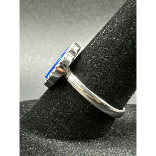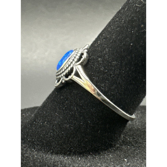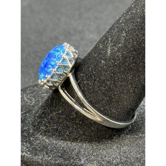 New Condition Sterling Silver Lab Blue Opal Ring 925 Size 7
