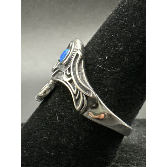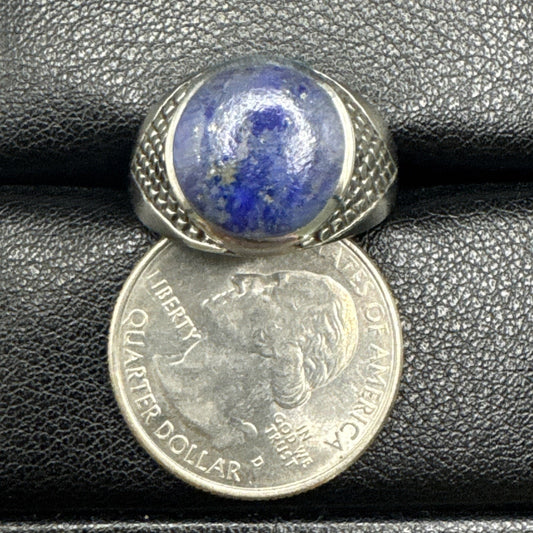 New Condition Sterling Silver Lapis Scales Textured Shank Ring 925 Size 10