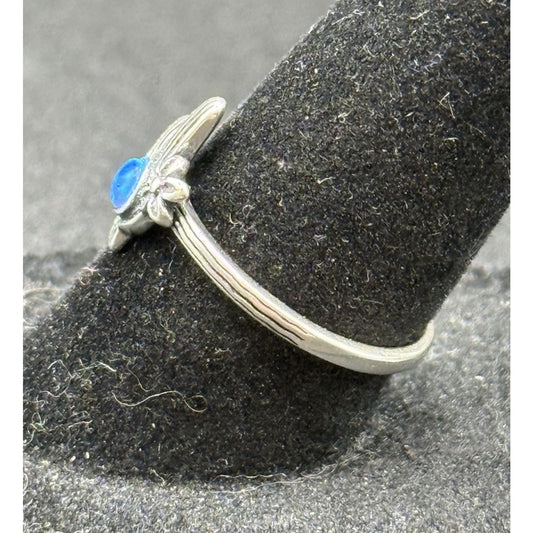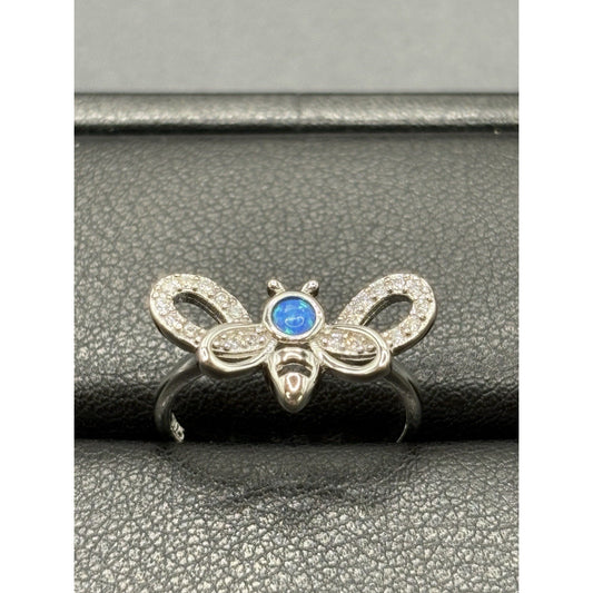 New Condition Sterling Silver Lab Blue Opal Cubic Zirconia Bee Ring Size 7
