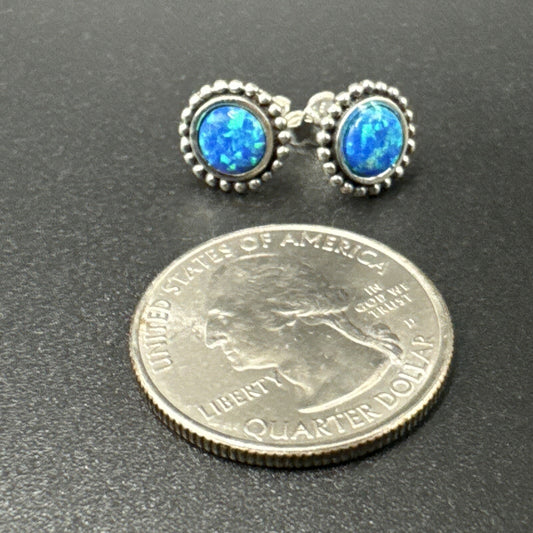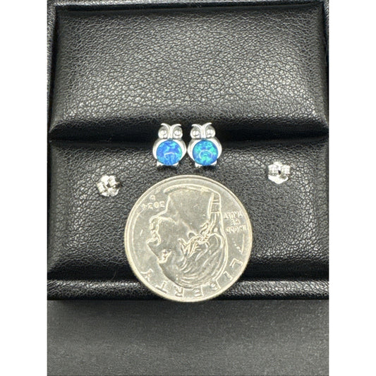 New Condition Sterling Silver Lab Blue Opal Stud Earrings