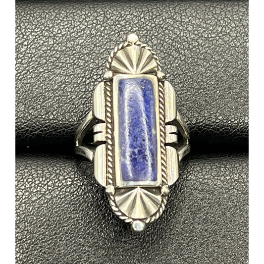 New Condition Sterling Silver Lapis Art Deco Ring Size 7