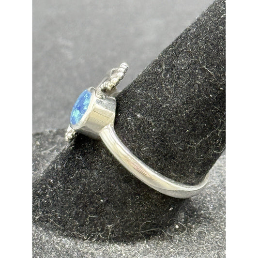 New Condition Sterling Silver Lab Created Blue Opal Ring 925 Size 7