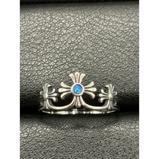 New Condition Sterling Silver Lab Blue Opal Crosses Ring Size 7