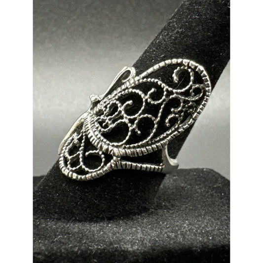 New Condition Sterling Silver Large Butterfly Ring 925 Size 7