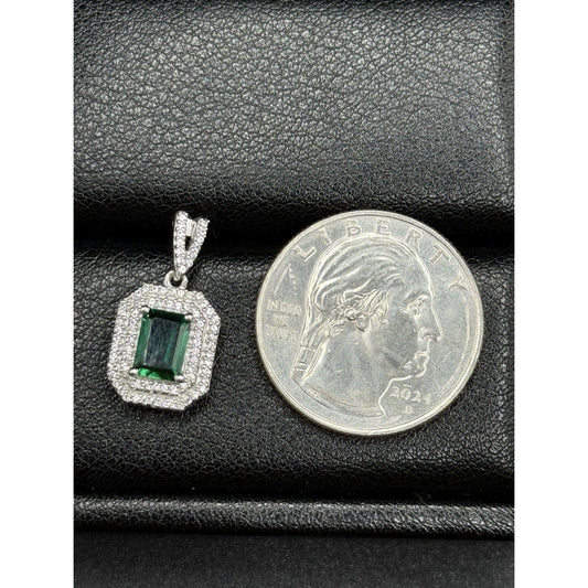 New Condition Sterling Silver Lab Created Emerald White Sapphire Earrings