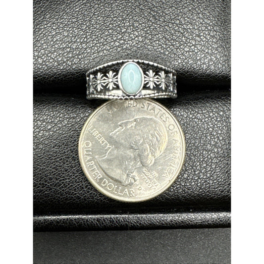New Condition Sterling Silver Lab Blue Opal Cactus Ring Size 6.75