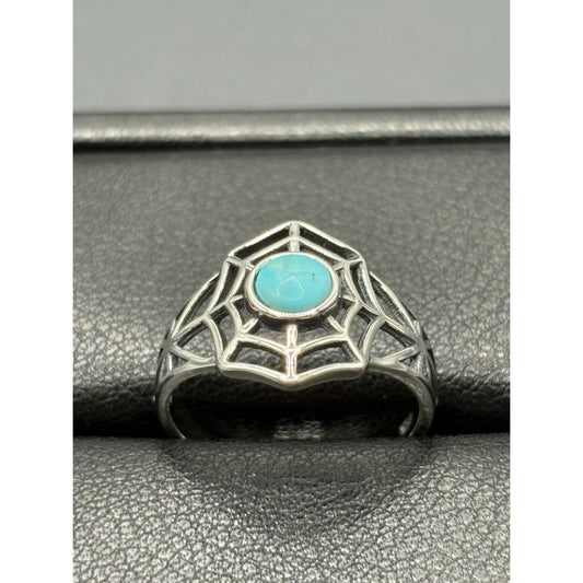 New Condition Sterling Silver Genuine Turquoise Spiderweb Ring Size 7