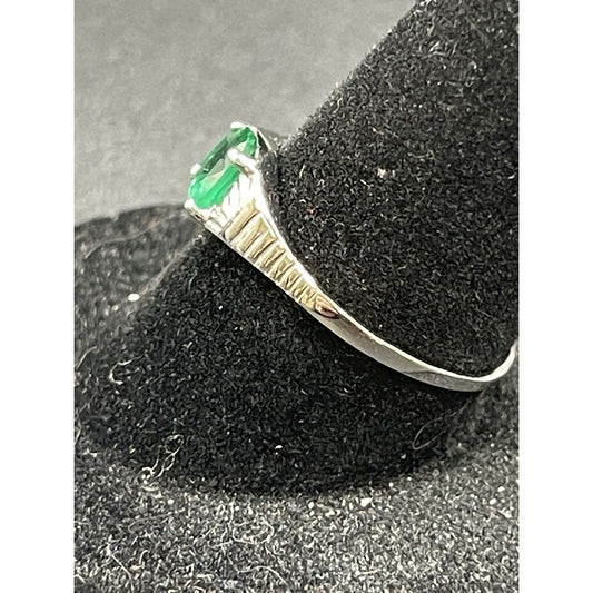 New Condition Sterling Silver Lab Created Emerald Dainty Ring 925 Size 7