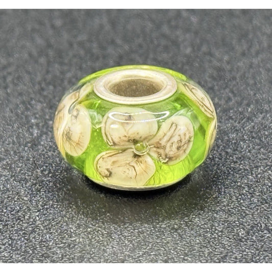 Camilla Sterling Silver Green& White Flower Murano Glass Charm P18