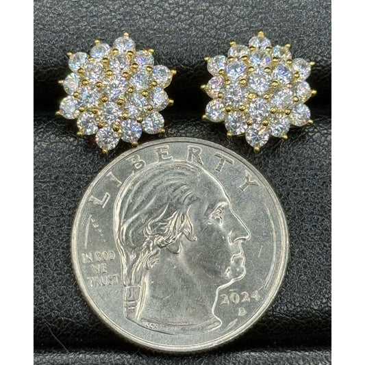 EUC Gold Sterling Silver Cluster Cubic Zirconia Earrings 925 P3