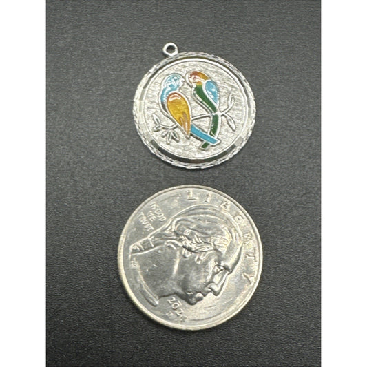 Sterling Silver Enamel Parrot Parakeet Birds Pendant 925 R06