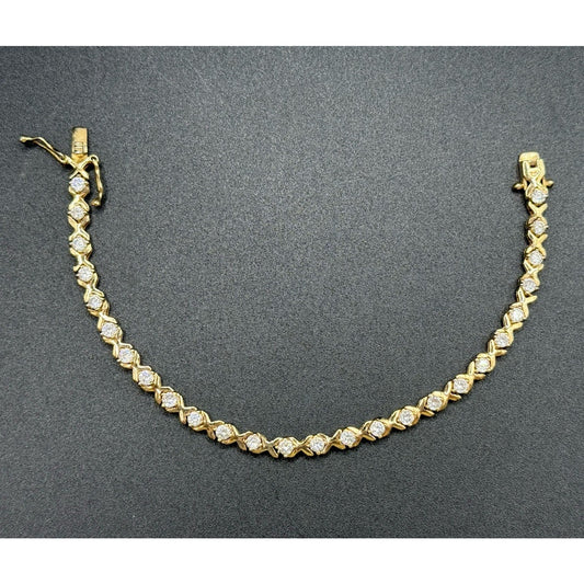 7” Gold Sterling Silver Tennis Bracelet Double Safety Q16