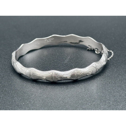 Vintage Sterling Silver Scalloped Hinged Bangle 925 12 Grams M27