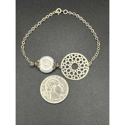 7.5” Sterling Silver Openwork Medallion Pearl Bracelet 925 T29