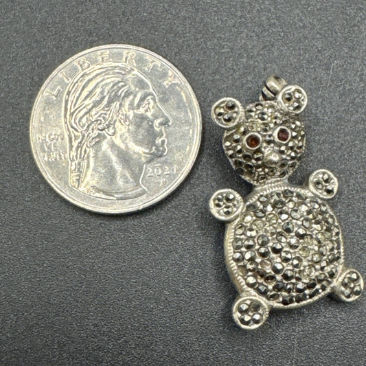 Sterling Silver Deco Style Marcasite Encrusted Bear Pin As Is 925 Q29