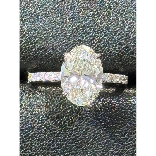 14k White Gold 3.08 Carat Oval Lab Grown Diamond Ring E Color VS1 Clarity