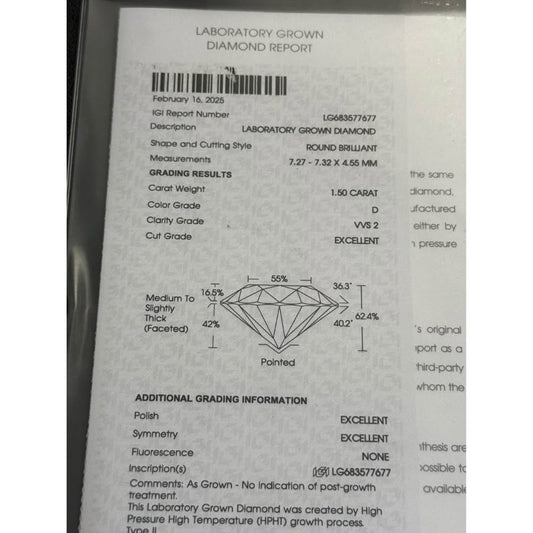 3.09 Total weight Round Brilliant Lab Grown Diamond F Color VS2 Clarity IGI Certified