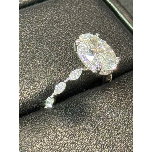 14k White Gold 3.10 Carat Oval Lab Grown Diamond Ring E Color VS1 Clarity IGI