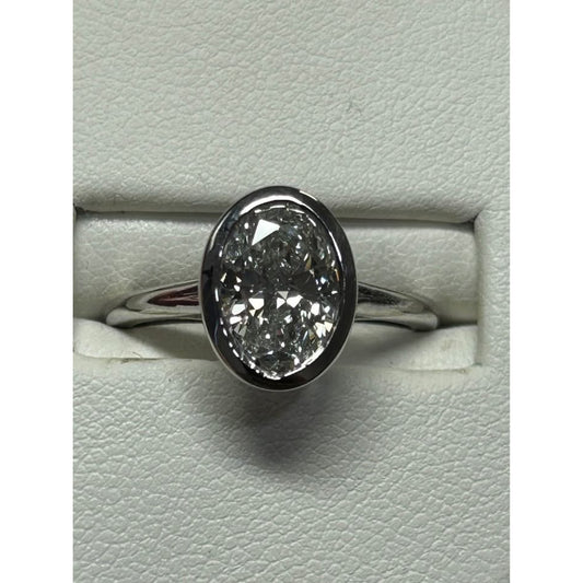 14k White Gold Lab Grown Oval 2.05 Carat Diamond E Color VS1 Bezel Ring