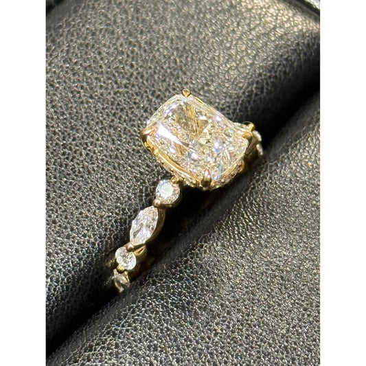 Brand New 14k Yellow Gold 3.03 Long Cushion Lab Grown Diamond Ring E Color VS1 Clarity IGI