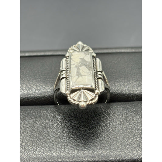 New Condition White Buffalo Sterling Silver Ring Size 6