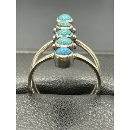 New Condition Sterling Silver Five Turquoise Ring Size 7
