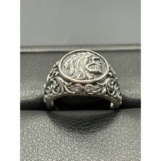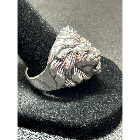 New Condition Sterling Silver Lions Head Ring Size 10.00