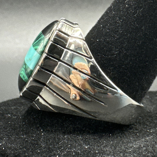 New Condition Sterling Silver Malachite Onyx Turquoise Ring 925 Size 10.00