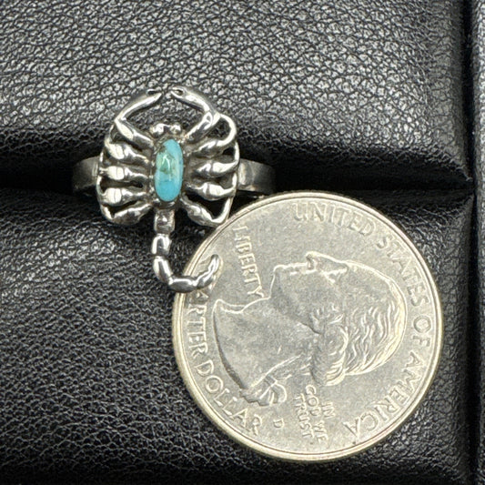 New Condition Sterling Silver Turquoise Scorpion Zodiac Ring 925 Size 7.00