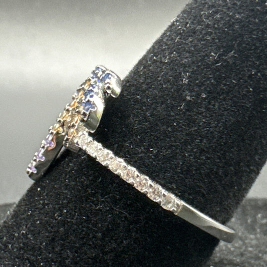 New Condition Sterling Silver Blue Pink Purple CZ Palm Tree Ring Size 7