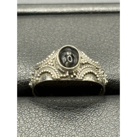 New Condition Sterling Silver Onyx Bali Style Ring Size 7