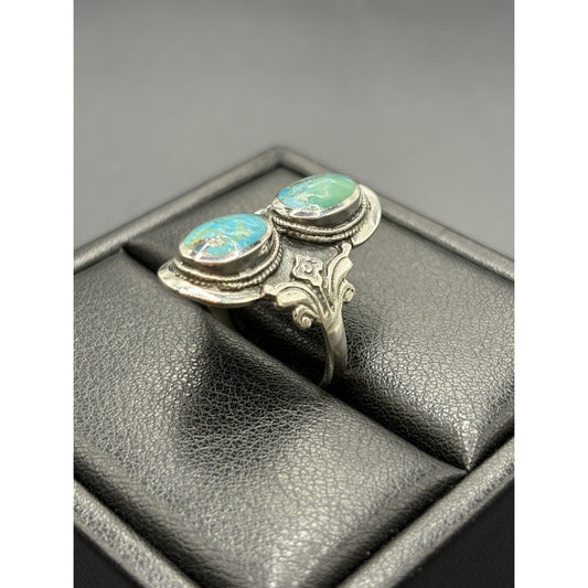 New Condition Sterling Silver Double Turquoise Long Ring Size 6