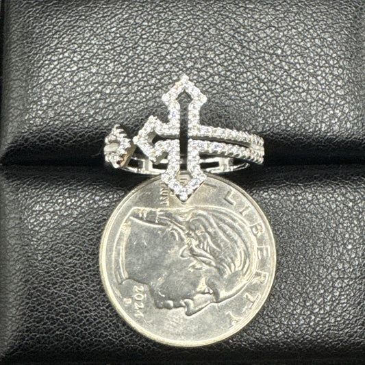 New Condition Sterling Silver CZ Open Lateral Cross Ring 3g 925 Size 7