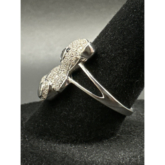 New Condition Sterling Silver CZ Encrusted Teddy Bear Ring 925 Size 6