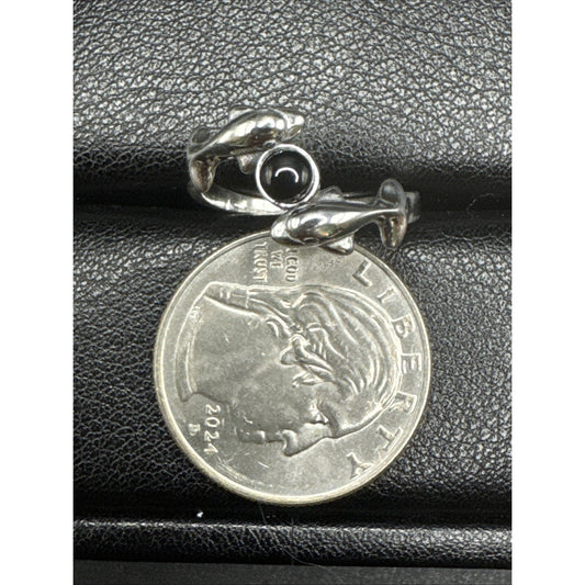 New Condition Sterling Silver Onyx Double Dolphins Ring 925 Size 7