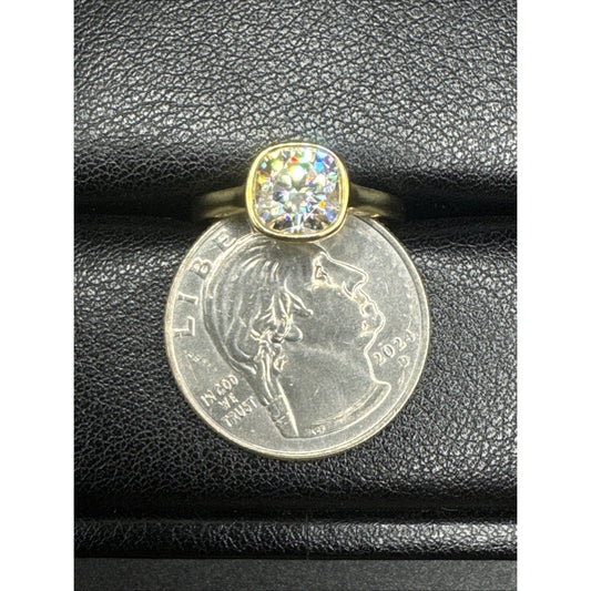 New Condition Gold Sterling Silver 2 Carat Cushion Moissanite Ring 925 Size 7.75